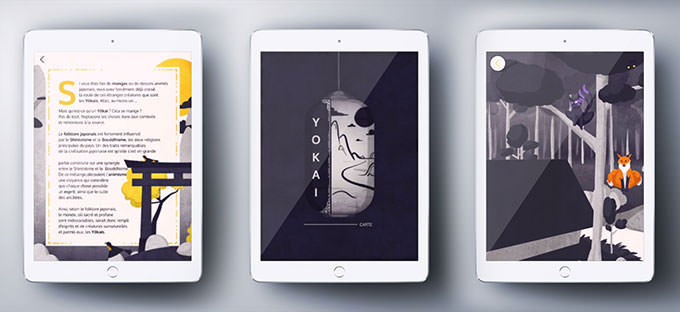 Three students on the Digital Art Direction course exhibited their digital book Yôkaï at the I Love Transmedia festival at the Gaîté Lyrique from 5th to 8th October 2017.